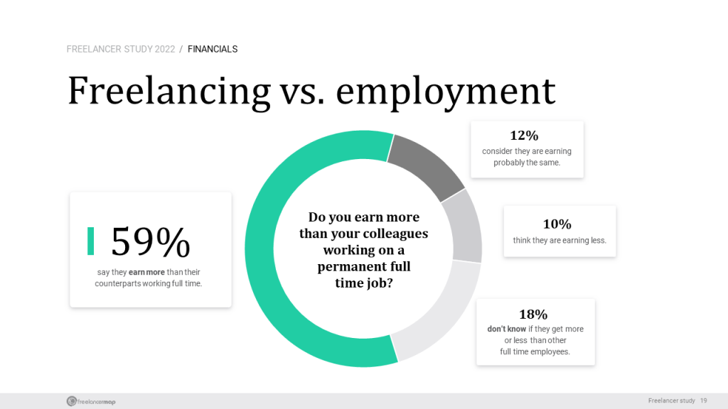 59% of freelancers say they are earning more than their counterparts working as full time employees - Freelancer Study 2022