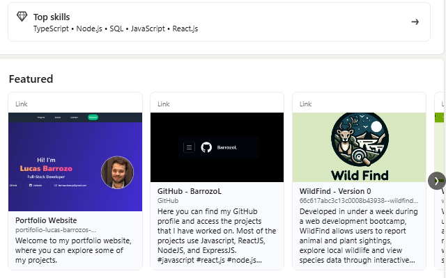 LinkedIn profile example of a freelance web developer